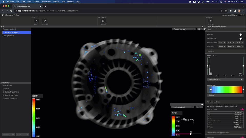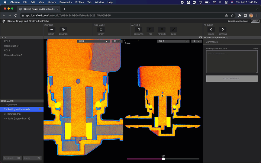 Voyager is Lumafield’s cloud-based inspection platform that runs directly in a web browser. It enables users to visualize, analyze, and share CT data from any computer, regardless of their location. It can be used to consolidate data from industrial CT scanners or 3D surface scanners.